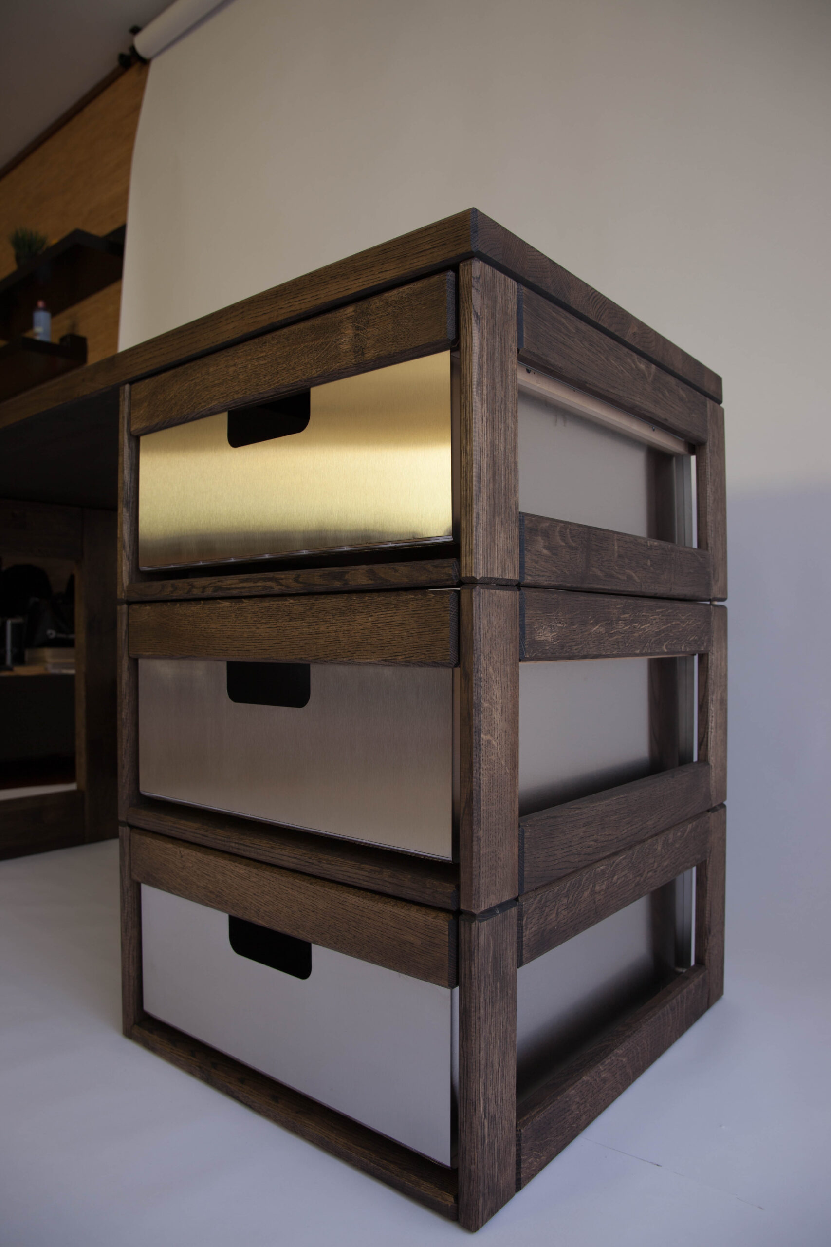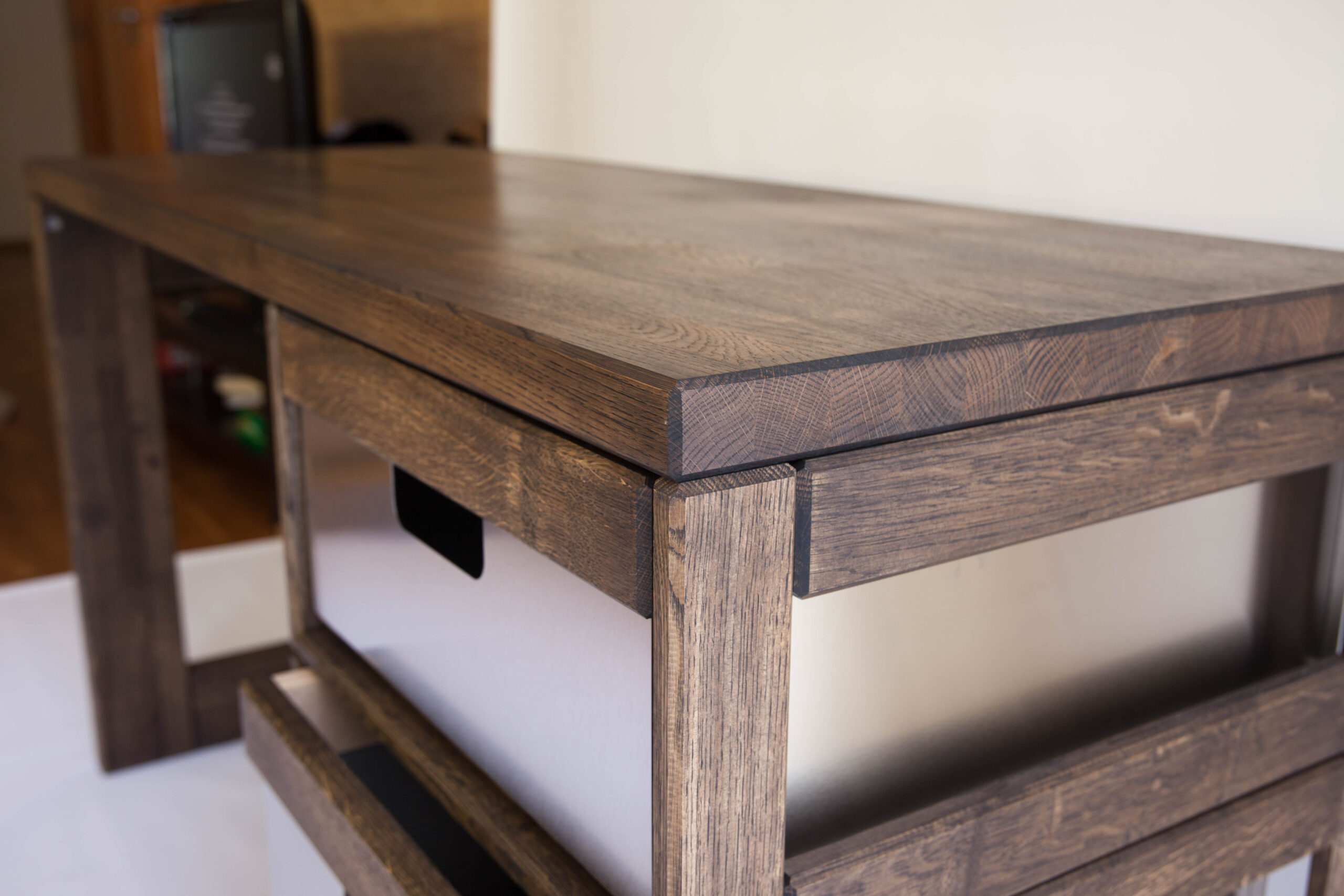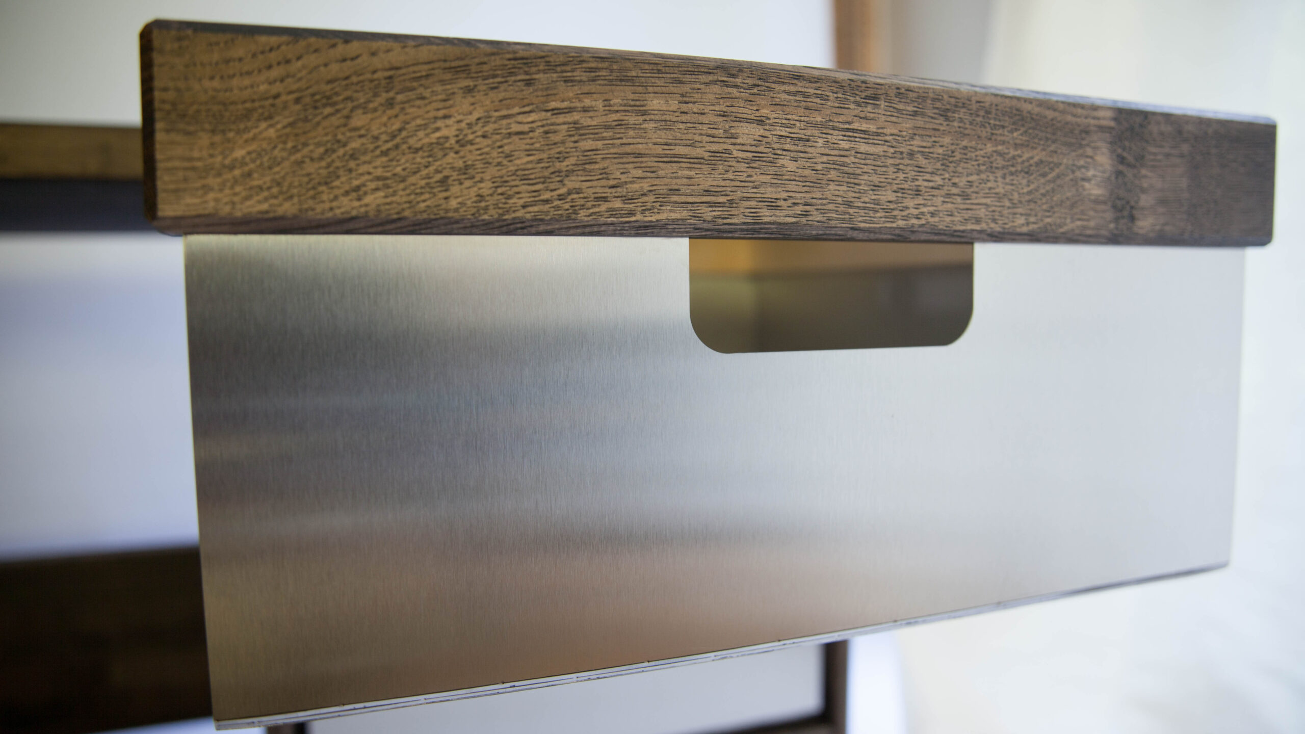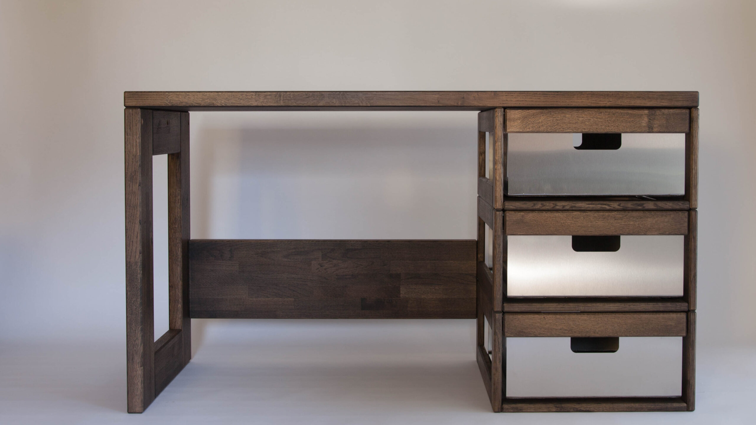 Elegantne massiivsest puidust roostevabast terasest sahtlitega kirjutuslaud.